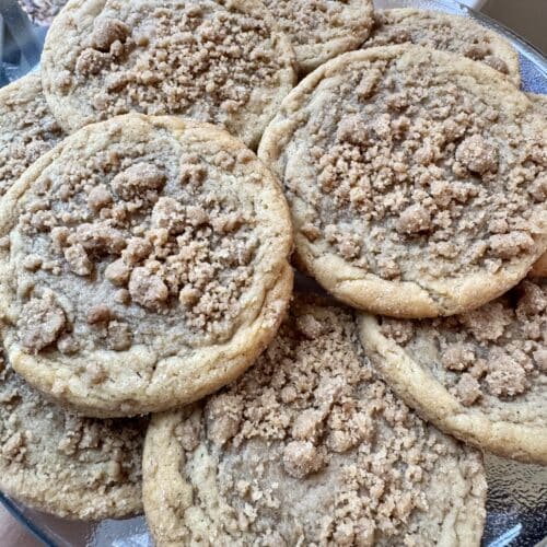 These chewy banana bread cookies are everything you love about banana bread — buttery, sweet, soft — transformed into thick, bakery-style cookies with crisp edges and a caramelized brown sugar crumble topping.